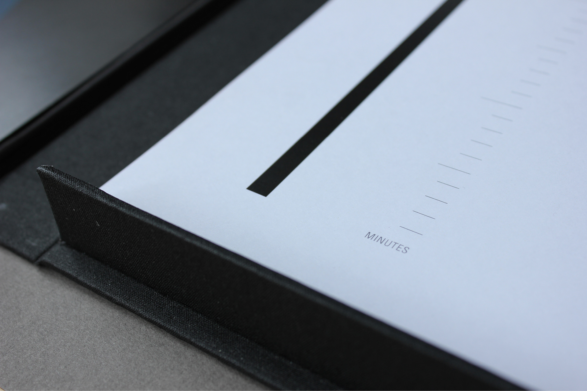 A single edition commemorative book to celebrate the inauguration of Barack Obama as the first African-American President of the USA. The archival format is intended to preserve the inaugural speech as a defining part of global history. Concealed within a handmade A3 clamshell box are 20 loose leaf pages each representing one minute of time as the speech was spoken. Every word is set on a baseline grid which is formed of sixty single second increments. The words appear on the page exactly as they were spoken in real time. On the reverse of each page, a more fluid layout of subtexts—explaining the processes and techniques that form the structure of an inaugural presidential speech—are juxtaposed between the letters of a poignant headline from the day.