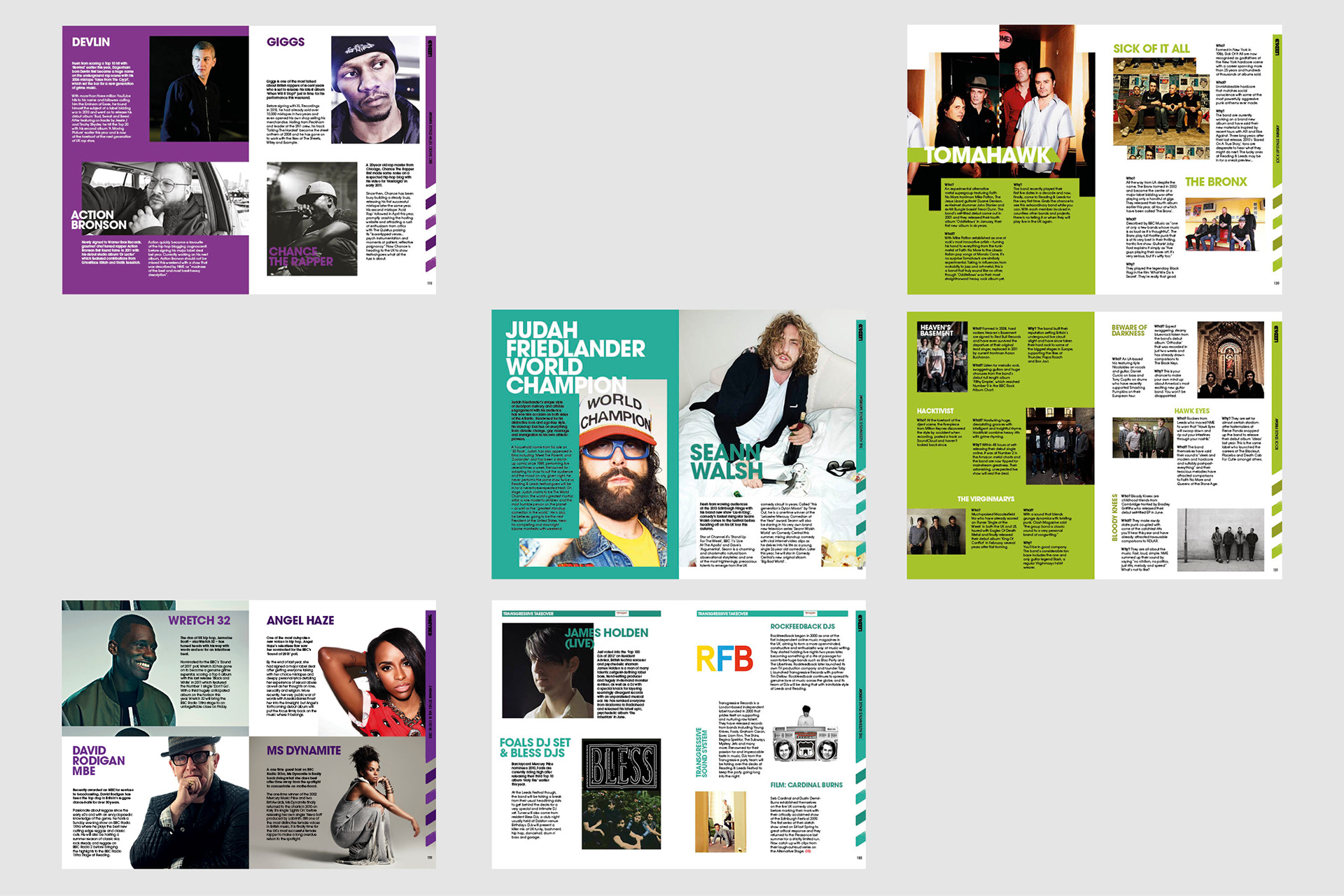 Programme layouts and artwork for the Reading & Leeds Festival in 2013. Client: Firebrand Live Creative Direction: Reason Design
