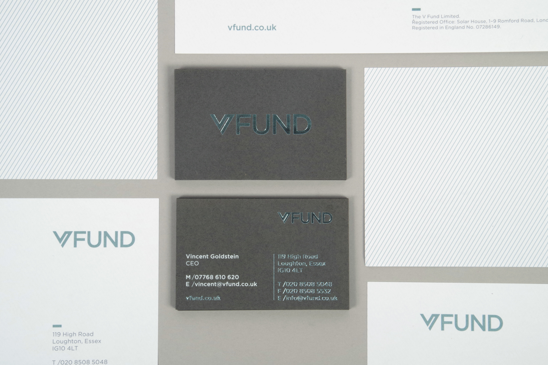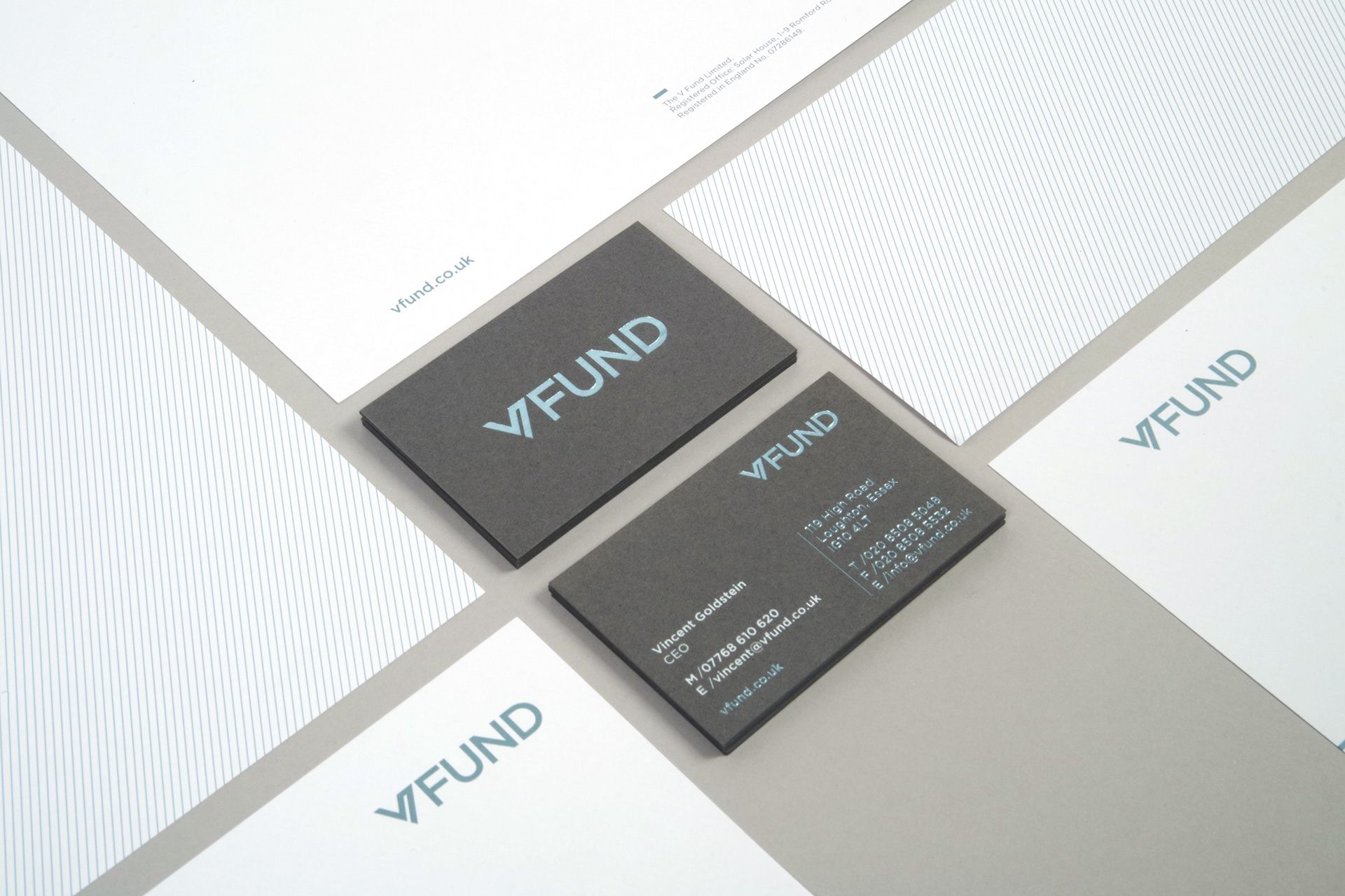 Branding and stationery for VFund, a privately owned investment and development company based in London. Work completed at Energy Design Studio.